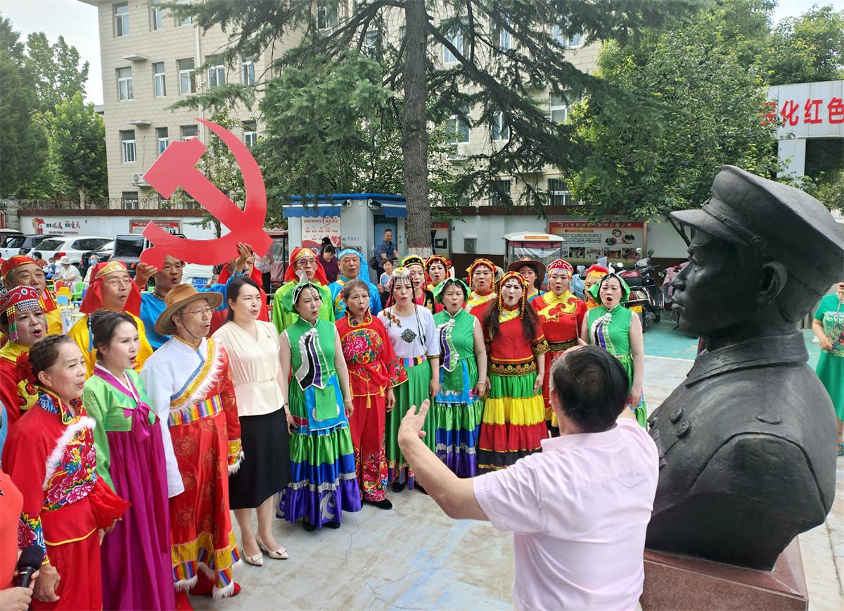 6月28日,楊根思雙擁社區(qū),大家在特級英雄楊根思塑像前合唱《英雄贊歌》。當(dāng)日,為迎接建黨102周年,激發(fā)廣大黨員干部群眾的愛黨愛國熱情,楊根思雙擁社區(qū)組織人員,用深情的歌聲、動人的旋律詮釋了對黨的無限忠誠、對祖國的無限熱愛。 黃增瑞 攝