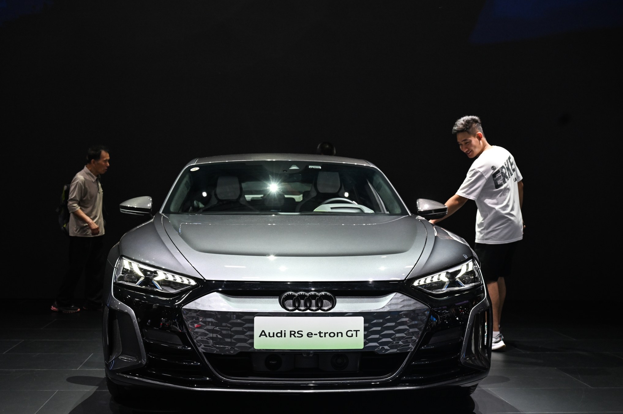 觀眾在長(zhǎng)春汽博會(huì)上的一汽-大眾奧迪展位參觀(新華社攝)。