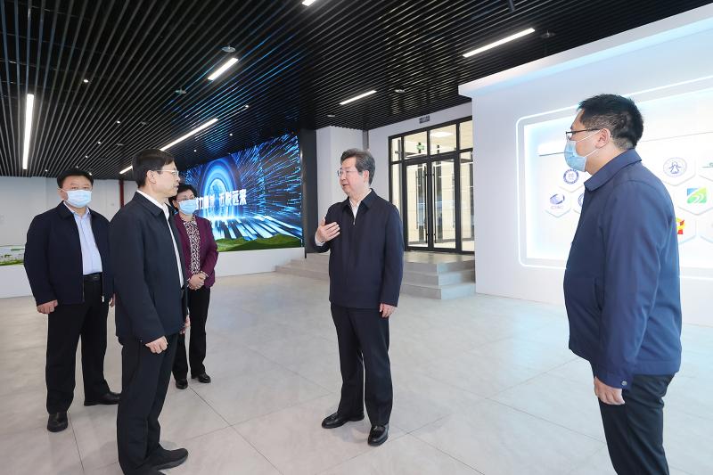 揭牌儀式后,樓陽生等察看堯山實驗室展廳和規(guī)劃沙盤,了解實驗室及白龜湖科創(chuàng)新城規(guī)劃建設情況。