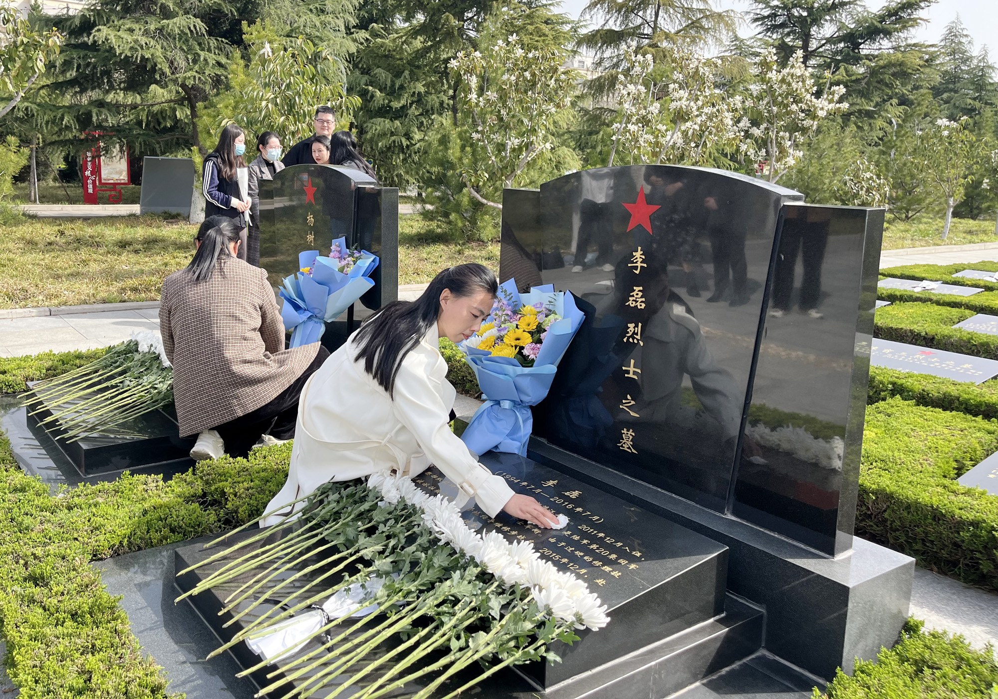 3月29日,魏都區(qū)北大街道楊根思雙擁社區(qū)與魏都區(qū)團(tuán)委組織多名軍嫂到市區(qū)烈士陵園緬懷維和烈士李磊、楊樹(shù)朋。本報(bào)記者 黃增瑞 攝