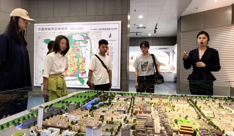 活動中,同學們先游覽了護城河,觀賞了兩岸風光。尤其是春水橋、西關橋以及建設橋附近的三國故事主題浮雕,給他們留下了深刻的印象。隨后,同學們又參觀了許昌市規(guī)劃展覽館,聆聽講解、觀看展臺、研究沙盤,全方位了解了許昌城市發(fā)展變遷的歷史。