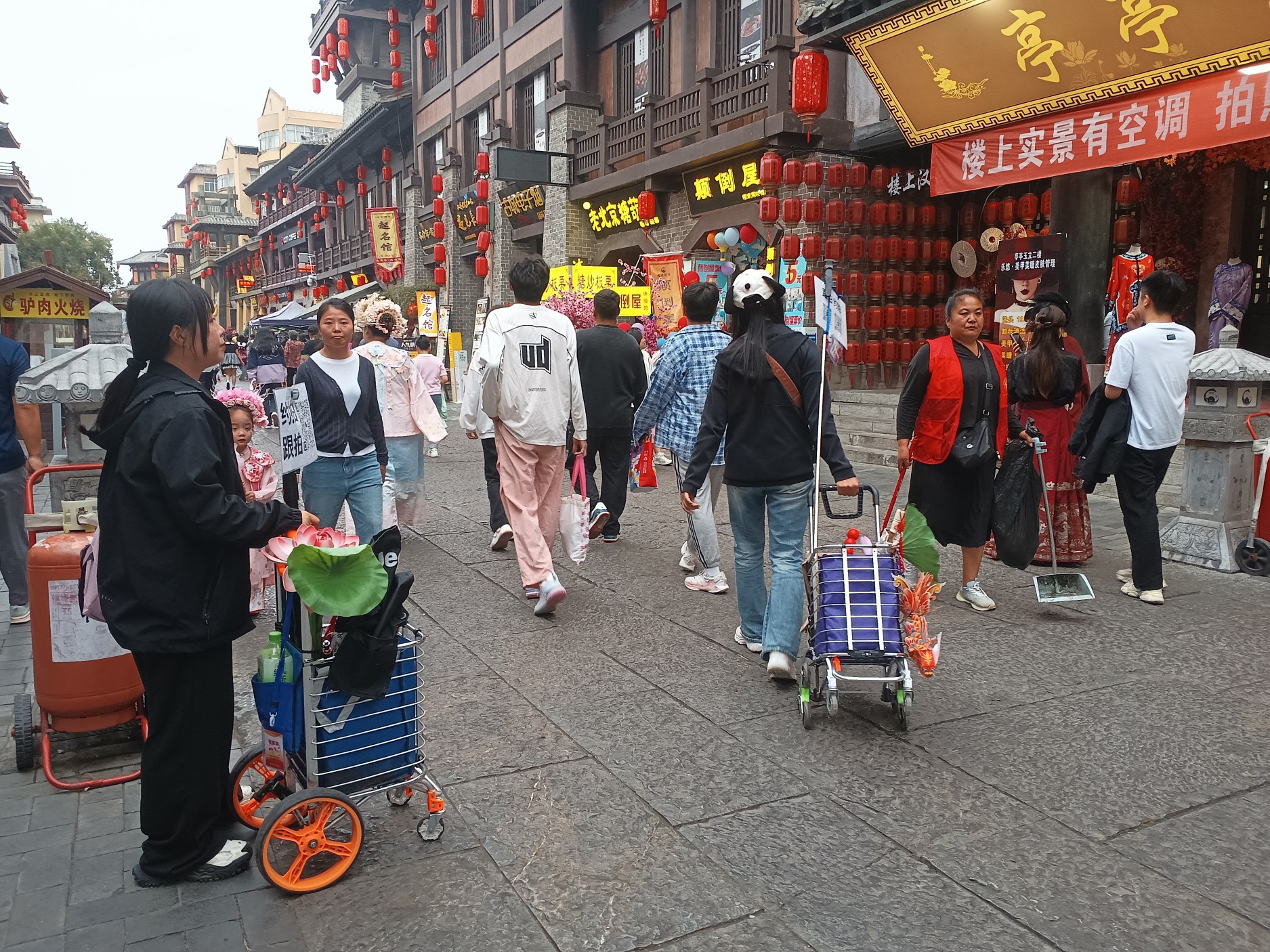 在“曹魏不夜城”開特色小吃店的老劉夫婦說,他們的店鋪通常從下午營業(yè)到深夜。除了周末,工作日的游客也不少。