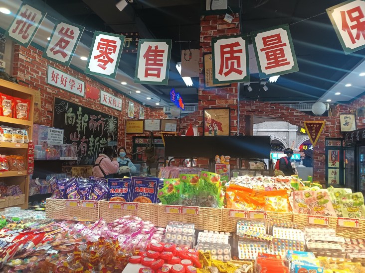 “與小時候的包裝一模一樣,味道依舊。”1983年出生的張燕在這里買了一小筐零食。她說,這些零食讓她想起兒時放學(xué)在校門口小攤前駐足的時光,一波“回憶殺”襲來。