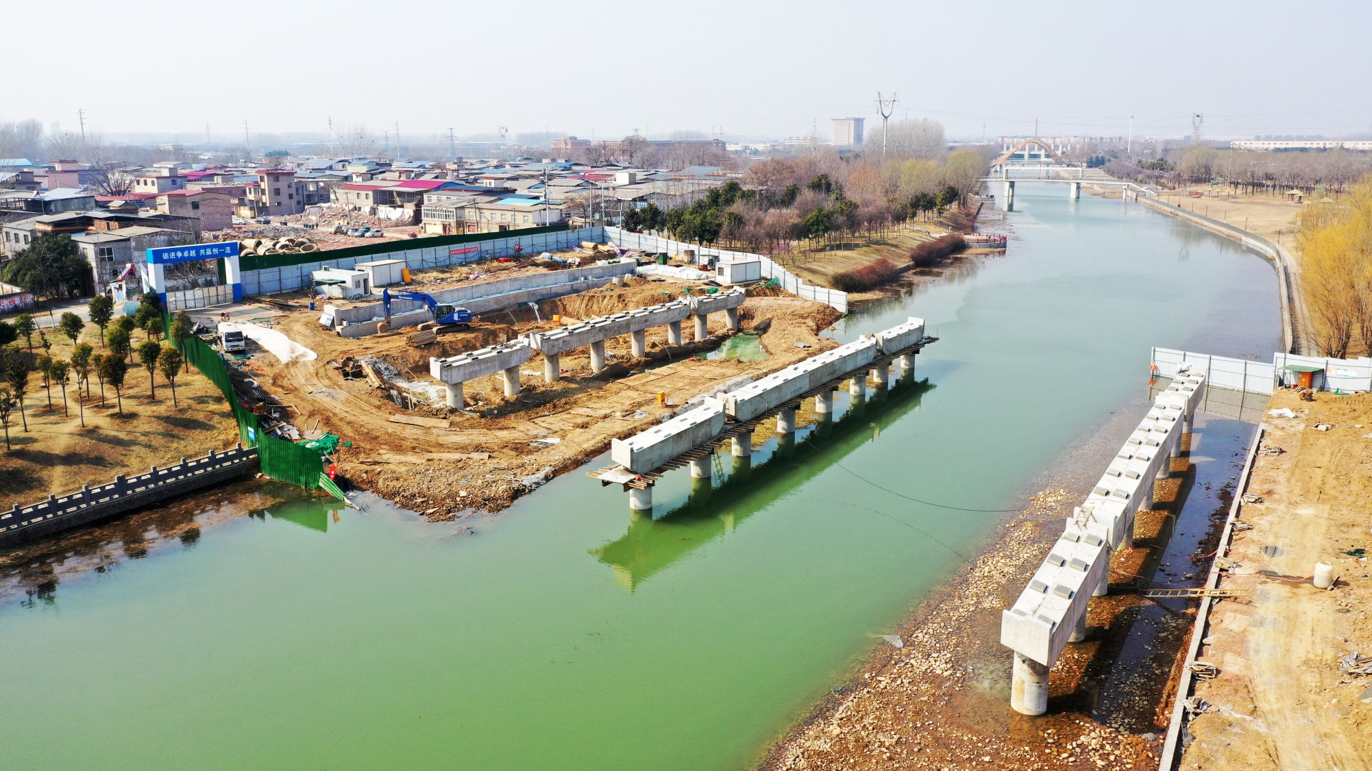 市區(qū)陳莊街(清潩河至和平路段)項(xiàng)目為我市中心城區(qū)城市更新重點(diǎn)項(xiàng)目,也是市委、市政府和魏都區(qū)委、區(qū)政府確定的2024年重點(diǎn)建設(shè)項(xiàng)目之一。按照工程總體進(jìn)度要求,目前,陳莊街清潩河橋已進(jìn)入實(shí)質(zhì)性施工階段。圖為2月26日,陳莊街清潩河橋施工現(xiàn)場(chǎng)(無人機(jī)照片)。 本報(bào)記者 牛書培 攝