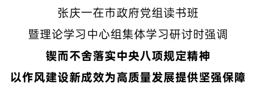 近日,市政府黨組采取集中自學和交流研討相結合的方式,舉辦深入貫徹中央八項規(guī)定精神學習教育讀書班暨理論學習中心組集體學習研討。市委副書記、市長、市政府黨組書記張慶一主持并講話,強調(diào)要深入學習領會習近平總書記關于加強黨的作風建設的重要論述,全面學習貫徹中央八項規(guī)定及其實施細則精神,推進作風建設常態(tài)長效,為推動實現(xiàn)“兩融五城四躍升”提供堅強保障。