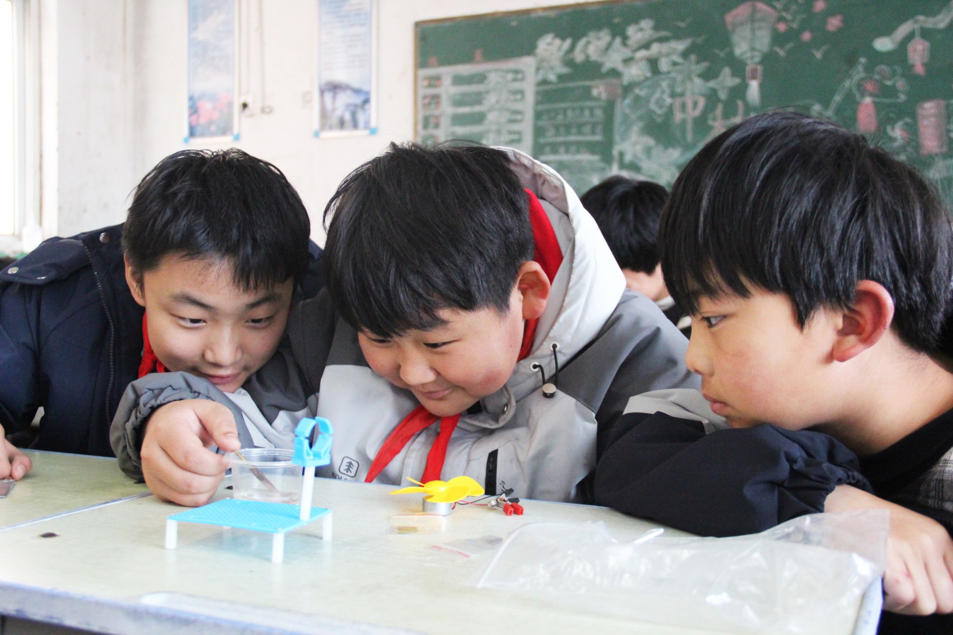 “老師,老師,我也要試!”演示結(jié)束,孩子們熱情高漲,紛紛舉手。在王靜慧等大學(xué)生志愿者的分組指導(dǎo)下,孩子們小心翼翼地做起實驗。六年級學(xué)生張欣婷和小伙伴成功將液體變色,興奮地歡呼:“太神奇了!原來科學(xué)這么有趣!”