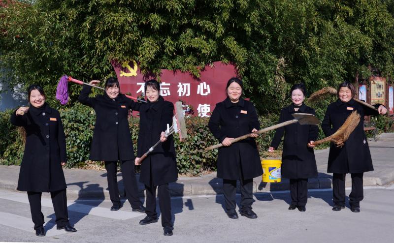 吳灣社區(qū)巾幗志愿服務(wù)隊的隊員們手持保潔工具,準(zhǔn)備前往社區(qū)孤寡老人、留守兒童家中,開展義務(wù)幫扶活動。