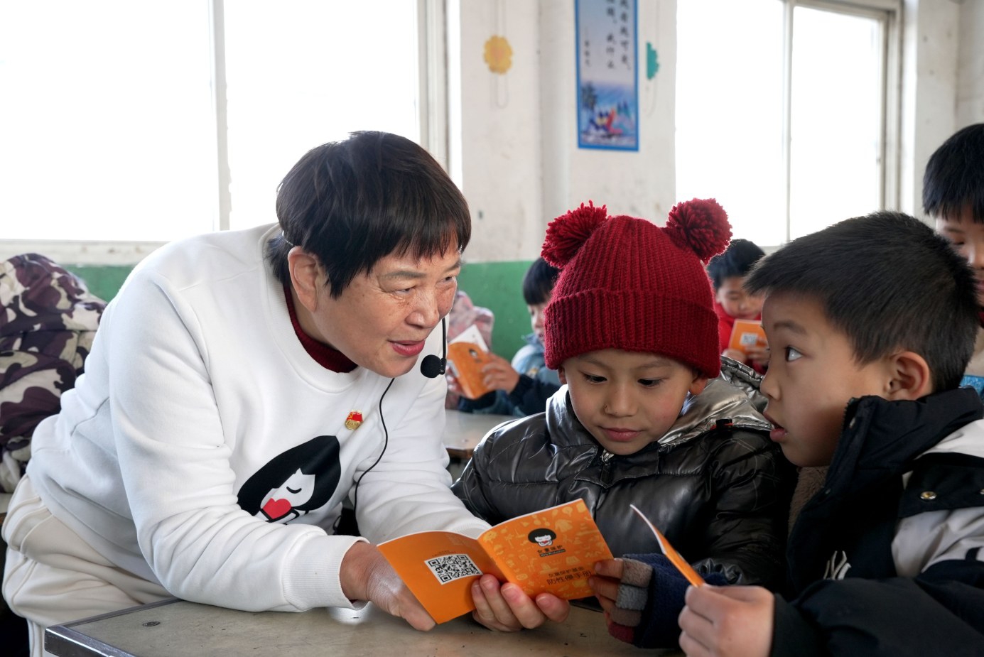 “孩子們,閱讀的時候有什么感悟可以寫下來,養(yǎng)成隨手記錄的好習慣……”70多歲的志愿者李靈芝彎著腰,把一本本日記本遞到孩子們手中,臉上笑開了花。