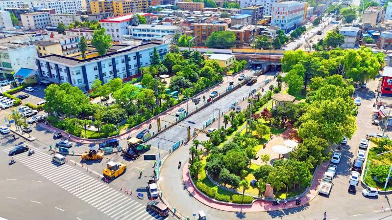 建設(shè)鐵路橋下道路提升改造工程全景。本報(bào)記者 譚宜姝 攝