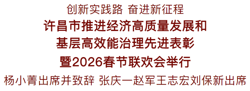 2月12日晚,“創(chuàng)新實(shí)踐路 奮進(jìn)新征程”許昌市推進(jìn)經(jīng)濟(jì)高質(zhì)量發(fā)展和基層高效能治理先進(jìn)表彰暨2026春節(jié)聯(lián)歡會(huì)在許都大劇院舉行。市委書記楊小菁出席并致辭,市長(zhǎng)張慶一、市委副書記趙軍、市人大常委會(huì)主任王志宏、市政協(xié)主席劉保新等市四套班子領(lǐng)導(dǎo),受表彰先進(jìn)集體和先進(jìn)個(gè)人,以及社會(huì)各界代表等歡聚一堂,同賀新春佳節(jié)、共話美好未來。