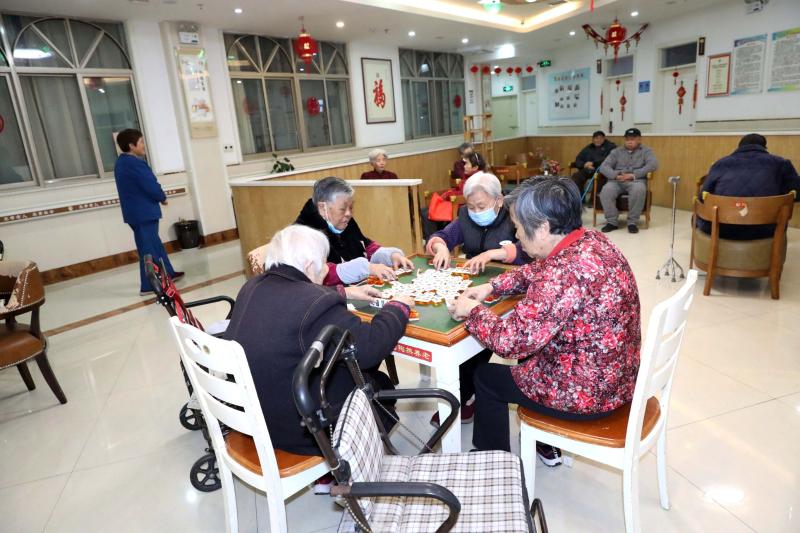 老人在綜合養(yǎng)老服務(wù)中心活動室打麻將。本報(bào)記者 牛書培 攝