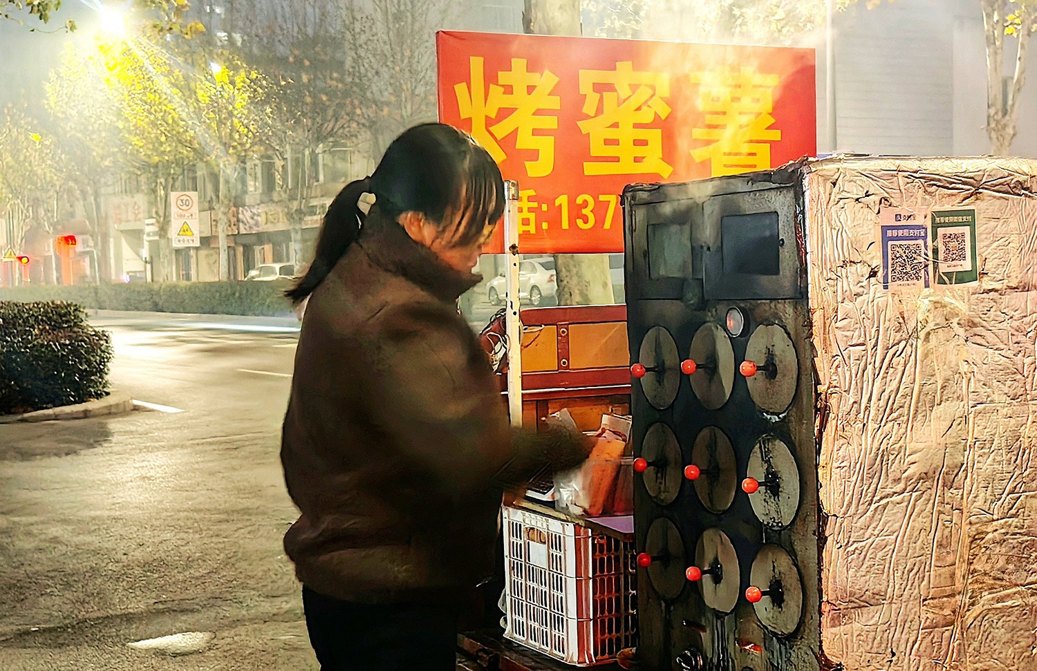 冬至過后,蓮城的寒意在朝暮間愈發(fā)濃烈。深夜的大街褪去喧囂,稀疏的行人裹緊衣衫匆匆而過,唯有街角的烤薯攤兒還亮著暖黃的燈,烤箱里的炭火跳躍,烤薯的甜香在寒風(fēng)中彌漫,攤主搓著凍紅的手,目光在熱氣中望向路口,為晚歸人留一盞暖光。